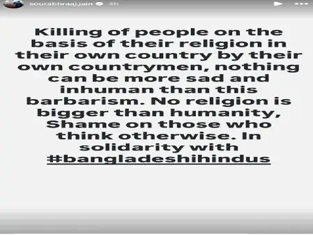 टीवी दुनिया के चहेते सौरभ जैन, जो श्री कृष्ण के किरदार से घर-घर मशहूर हैं, बांग्लादेशी हिंदुओं पर हो रही बर्बरता से स्तब्ध हैं। ‘धिक्कार है’ कहकर उन्होंने सोशल मीडिया पर अपना गुस्सा जाहिर किया, जो तेजी से वायरल हो रहा है।