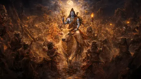 रुद्र संहिता और बालकांड में विस्तार। महाशिवरात्रि पर जलाभिषेक, बेल पत्र, जागरण से कष्ट नाश, समृद्धि। यह कथा प्रेम की महिमा और शिव के विराट स्वरूप की गाथा है, जो भक्तों को जीवन संतुलन सिखाती। रात्रि भर भजन-कीर्तन से घर-घर शिवमय।