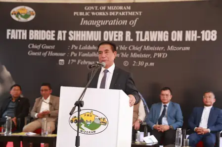 मिजोरम के आइजोल में मुख्यमंत्री लालदुहोमा ने त्लावंग नदी पर बने ‘फेथ ब्रिज’ (लेंगटेकाई पुल) का लोकार्पण किया। 43.83 करोड़ की केंद्रीय सहायता से बना यह पुल 100 मीटर लंबा, 7.5 मीटर चौड़ा और 1.5 मीटर फुटपाथों वाला है, जो 385 टन तक वजन उठा सकता है। त्रिपुरा व बांग्लादेश से रणनीतिक जुड़ाव बढ़ाने वाला यह ब्रिज पश्चिमी मिजोरम के ट्रैफिक को नई ऊंचाई देगा।