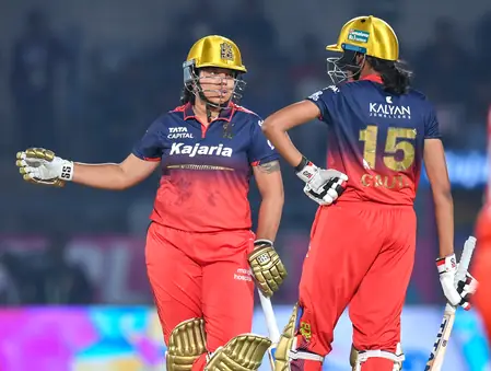 बीसीए स्टेडियम, वडोदरा। विमेंस प्रीमियर लीग में रॉयल चैलेंजर्स बेंगलुरु ने अपनी फॉर्म बरकरार रखते हुए गुजरात जायंट्स को 61 रनों से धूल चटा दी। पांचवीं लगातार जीत के दम पर आरसीबी प्लेऑफ में प्रवेश करने वाली पहली फ्रेंचाइजी बन गई।