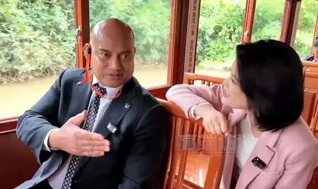 चीन के च्यांगमेन शहर में फिर पहुंचे नौरू राष्ट्रपति डेविड रानिबोक अदेआंग ने पर्यावरण प्रेम की मिसाल कायम की। बर्ड पैराडाइज वेटलैंड पार्क के क्रूज पर चाइना मीडिया ग्रुप को दिए साक्षात्कार में उन्होंने खुलकर बात की।