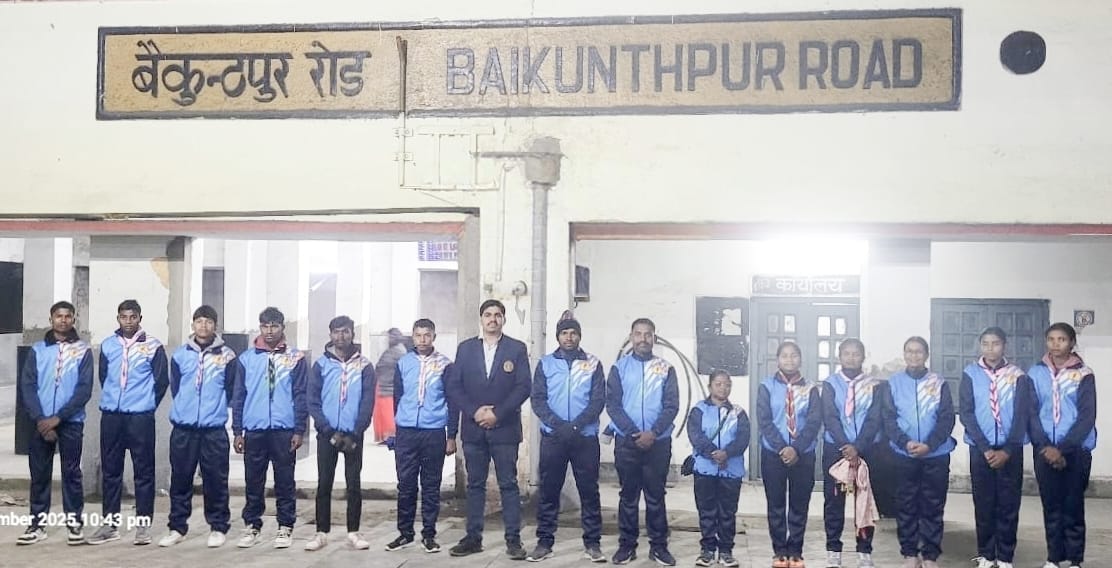 जिसमें जिला मुख्य आयुक्त देवेन्द्र तिवारी के मार्गदर्शन एवं जिला शिक्षा अधिकारी पदेन जिला आयुक्त स्काउट कोरिया विनोद कुमार राय के आदेशानुसार जिला प्रभारी शिव प्रताप सिंह विकासखंड सचिव बैकुंठपुर के साथ 06 स्काउट्स एवं 04 गाइड्स को सम्मिलित होने हेतु दिनांक 17 नवम्बर 2025 को बैकुंठपुर रोड रेल्वे स्टेशन से जिला सचिव सुरेन्द्र कुमार, जिला संगठन आयुक्त स्काउट नागेश्वर साहू, जिला संगठन आयुक्त गाइड आशा एक्का, जिला प्रशिक्षण आयुक्त गाइड निशा खान ने बधाई एवं शुभकामनाएं देकर रवाना किया, टीम दिनांक 18 नवम्बर 2025 को प्रातः 11:00 बजे शिविर स्थल झांकी सकुशल पहुंची है।