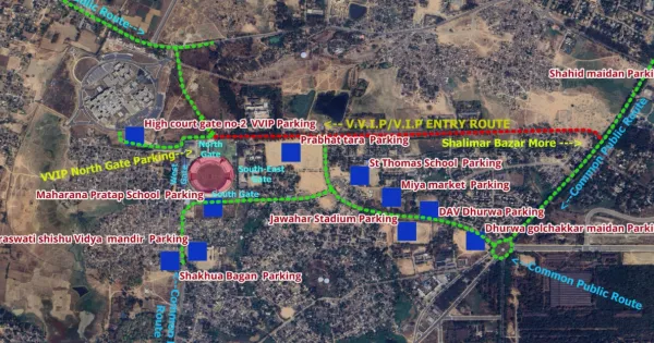 मैच के दिन, शालीमार चौक से JSCA स्टेडियम के नॉर्थ गेट तक का मार्ग सामान्य वाहनों के लिए पूरी तरह से सील रहेगा। हालांकि, एंबुलेंस और अन्य आपातकालीन वाहनों को इस मार्ग का उपयोग करने की अनुमति होगी। इसके अलावा, सुजाता चौक, राजेंद्र चौक, बिरसा चौक, धुर्वा गोलचक्कर, शहीद चौक, कद्रू पुल और अरगोड़ा चौक जैसे महत्वपूर्ण चौराहों पर भी कई तरह के वाहनों के आवागमन पर रोक लगाई गई है। स्थिति की गंभीरता को देखते हुए, ट्रैफिक पुलिस जरूरत पड़ने पर अन्य मार्गों पर भी ट्रैफिक परिवर्तन कर सकती है।
