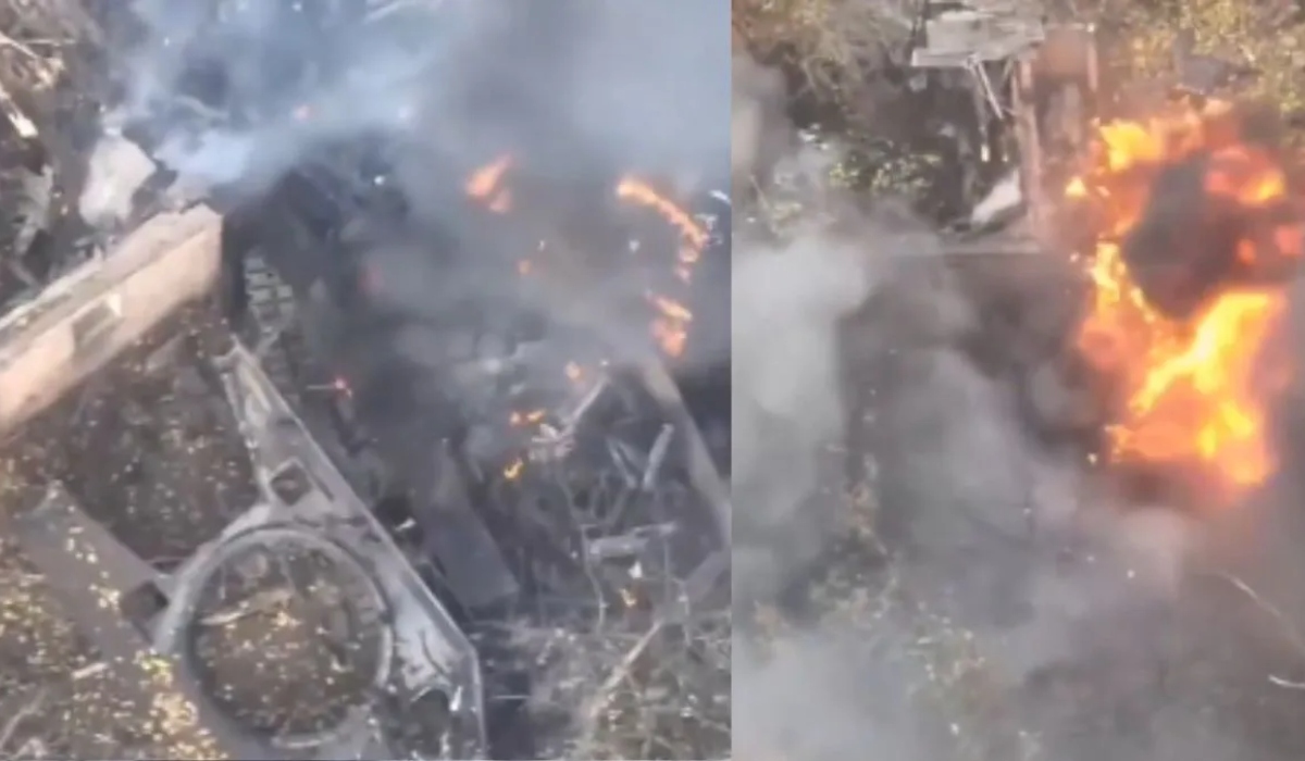 हालांकि, यह उम्मीदें रूसी ड्रोन के विध्वंसक हमले में चकनाचूर हो गईं। डोनेट्स्क क्षेत्र में छिपे एक रूसी ऑपरेटर सर्गेई ने ड्रोन के माध्यम से पहले टैंक के पहियों (ट्रैक) को निशाना बनाया, जिससे चारों ओर धातु के टुकड़े बिखर गए। कैप्टन अलेक्जेंडर के दल को आगे बढ़ने के आदेश के बावजूद, एक दूसरे मिसाइल हमले ने सीधे टैंक के इंजन को जा लिया, और कुछ ही क्षणों में पूरा टैंक आग की भयानक लपटों में समा गया, जो अब केवल जलता हुआ मलबा रह गया है।